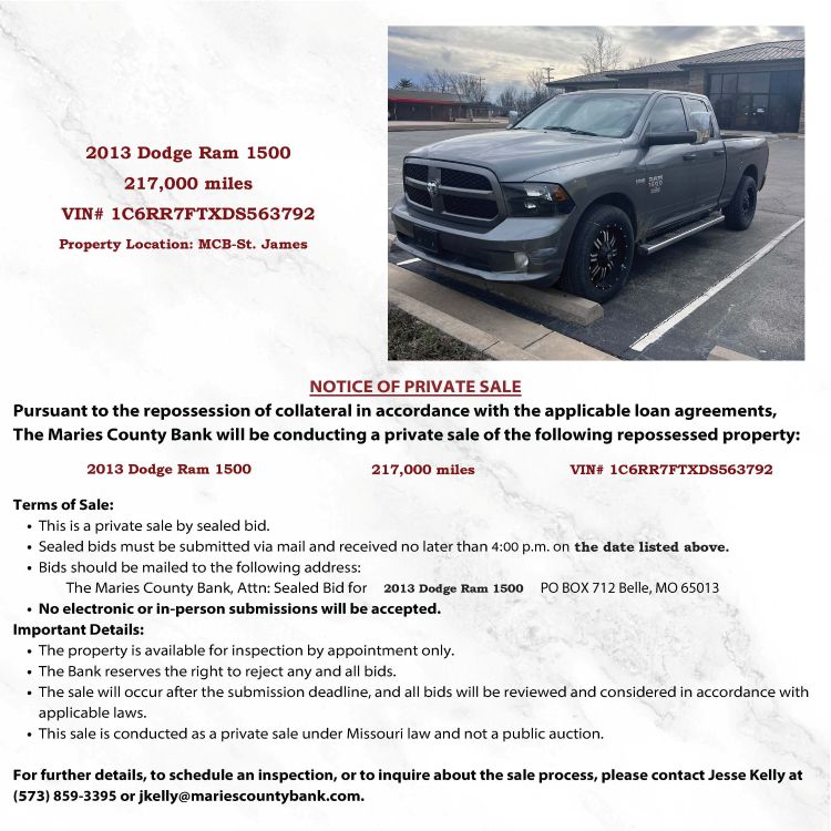 please contact Jesse Kelly at jkelly@mariescountybank.com or 573.859.3395